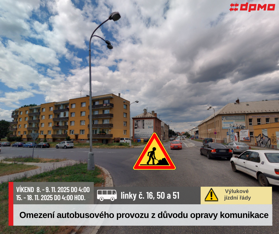 Omezení autobusového provozu - linky č. 16, 50 a 51 - od 8.11. do 18.11. 2025