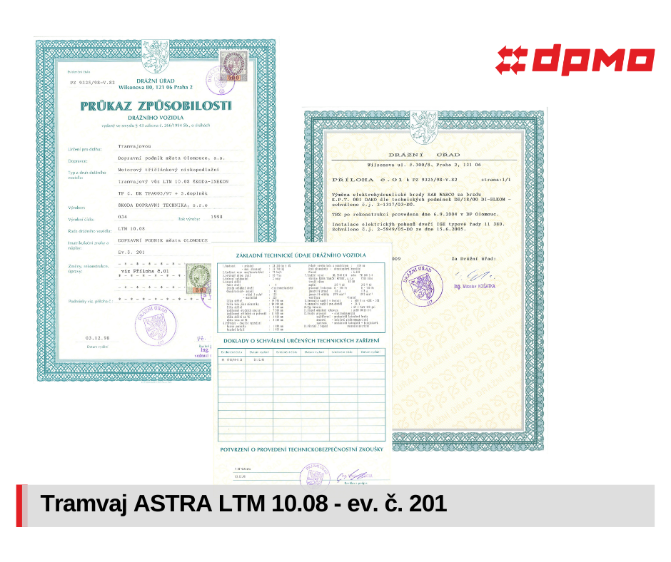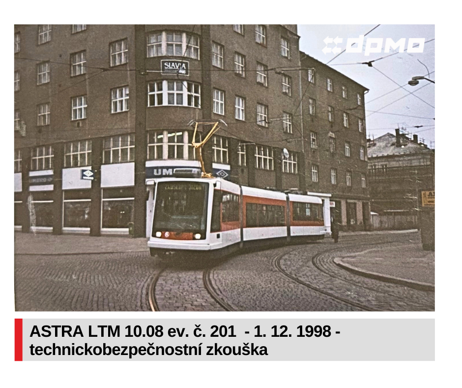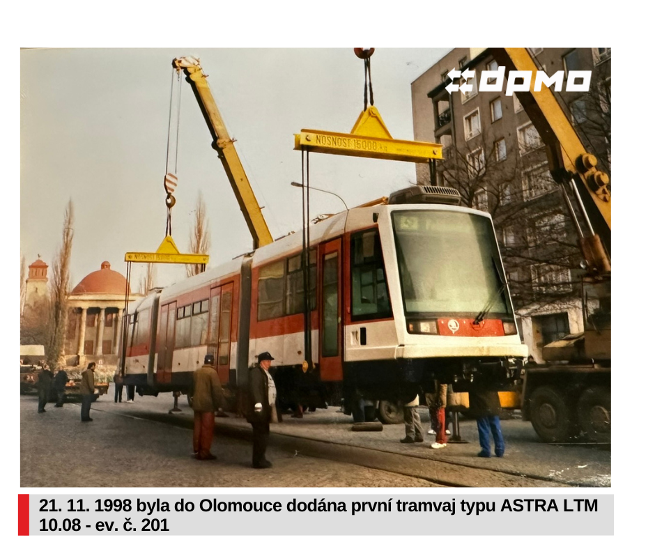 První nízkopodlažní tramvaj Astra ev. č. 201 byla do Olomouce dovezena z výrobního závodu Škoda v Plzni dne 21. 11. 1998 a dne 1. 12. 1998 se s ní uskutečnila technickobezpečnostní zkouška.