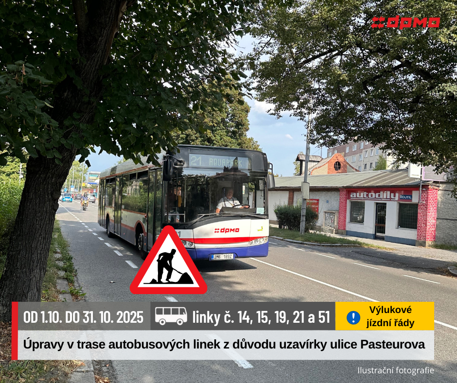 linky č. 14, 15, 19, 21, 51 | od 1.10. do 31.10. | Omezení provozu - Pasteurova |