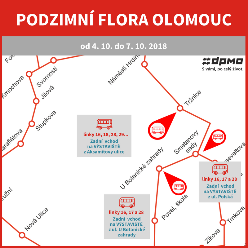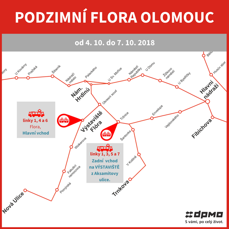 Ve čtvrtek 4. 10. 2018 a v pátek 5. 10. 2018 bude, vzhledem k očekávané zvýšené frekvenci cestujících, vypravena posilová tramvajová souprava, která bude vedena v cca 8.00 hod. a opětovně v cca 9.00 hod. jako posilový spoj na lince č. 6 na konečnou Nová Ulice.