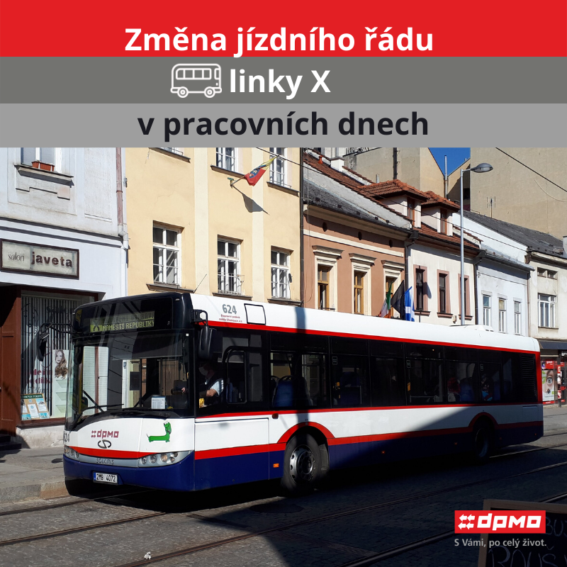 Z důvodu rozhodnutí vlády o postupném uvolňování restriktivních opatření v souvislosti s výskytem koronaviru bude s platností od pondělí 27. 4. 2020 změněn jízdní řád autobusové linky X v pracovních dnech.