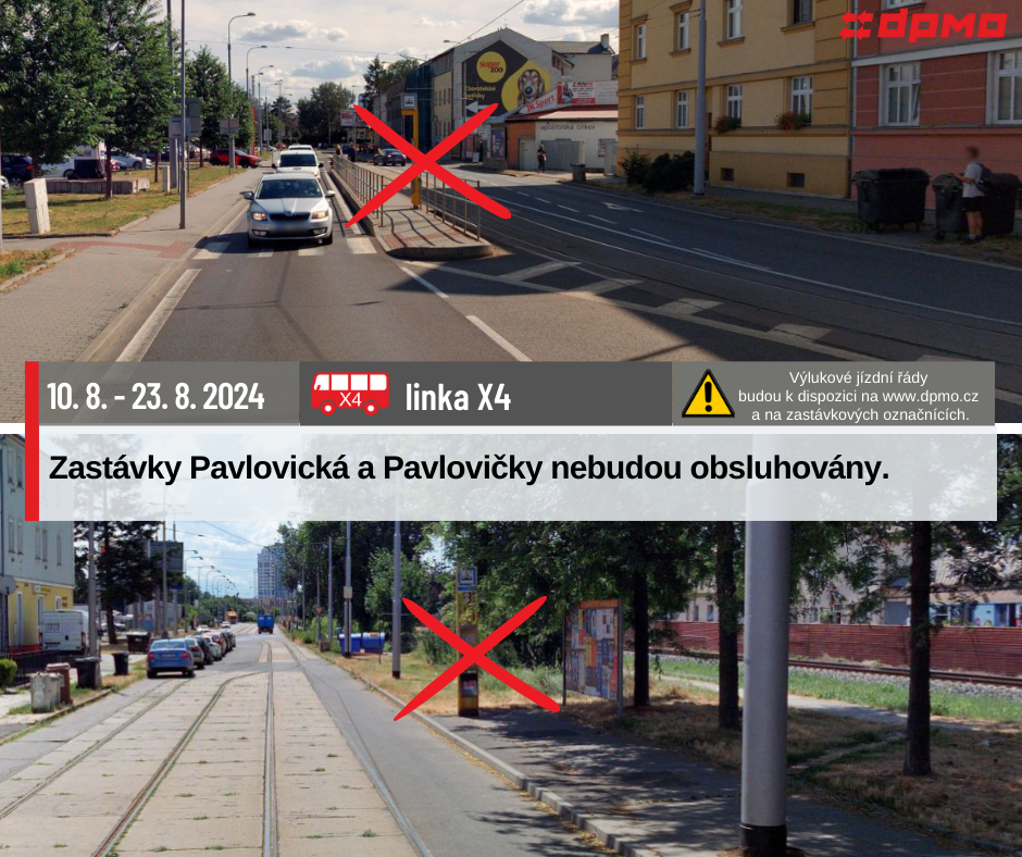 Linka X1/4 /platnost od 10.8. do 23.82024 - výluka Pavlovičky a Nová Ulice