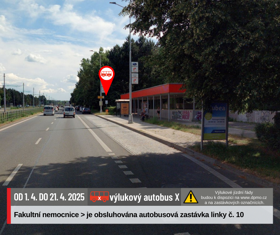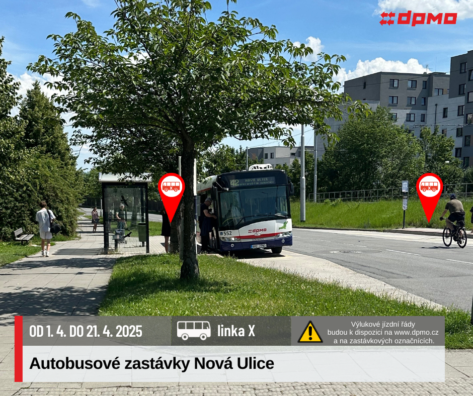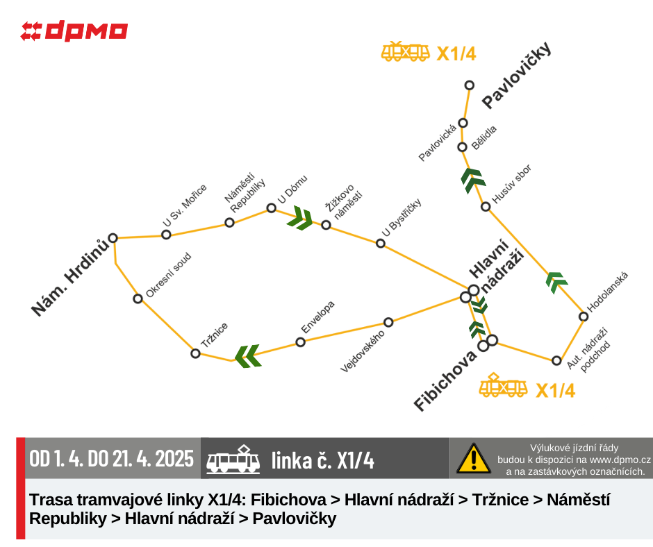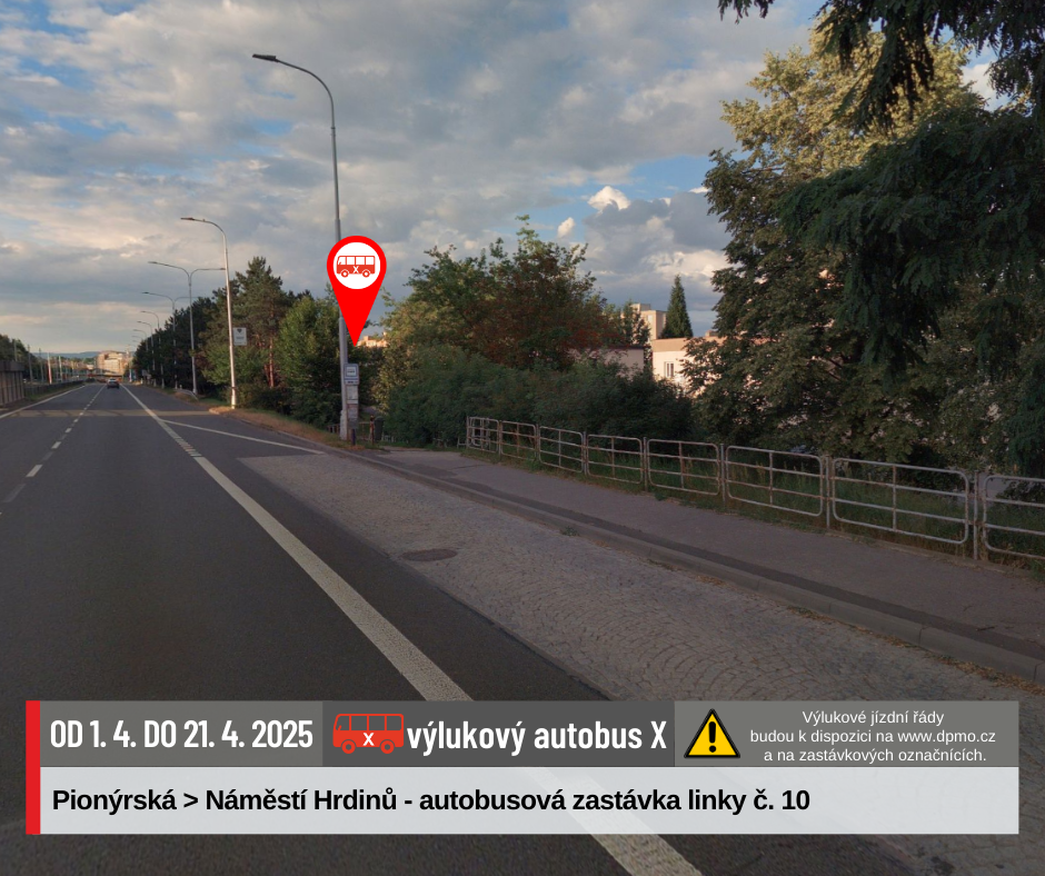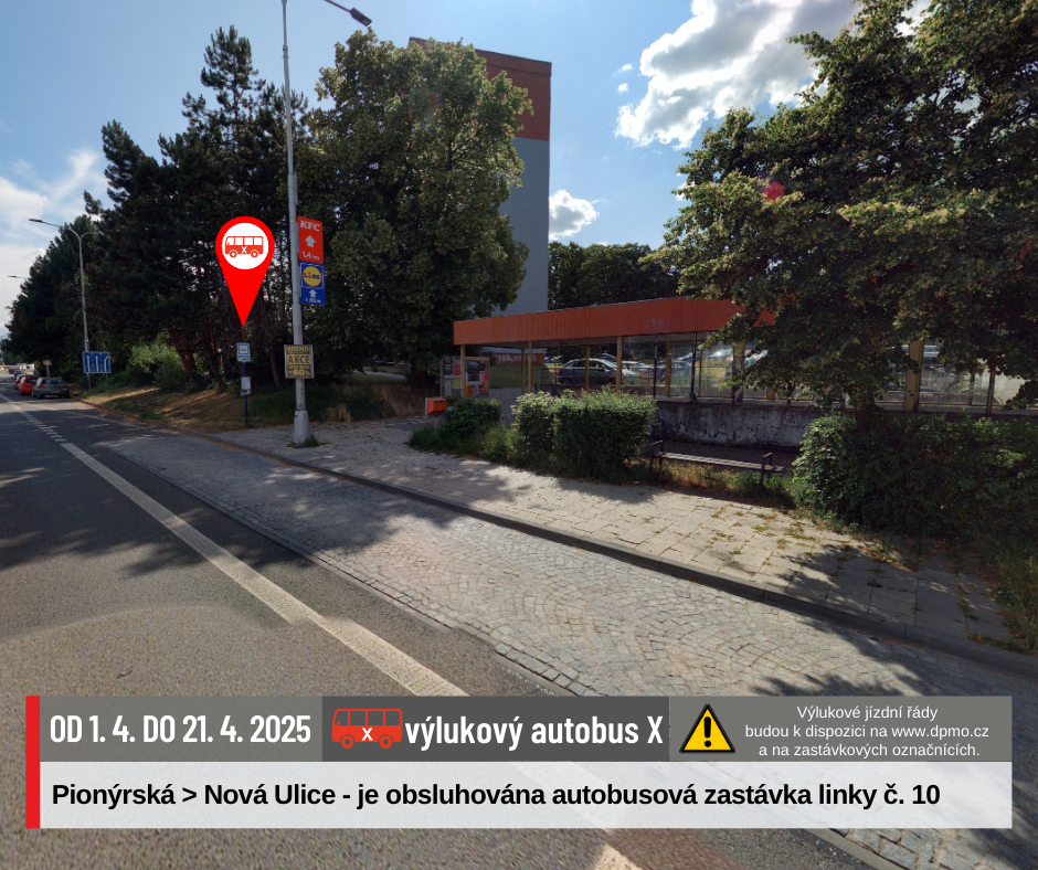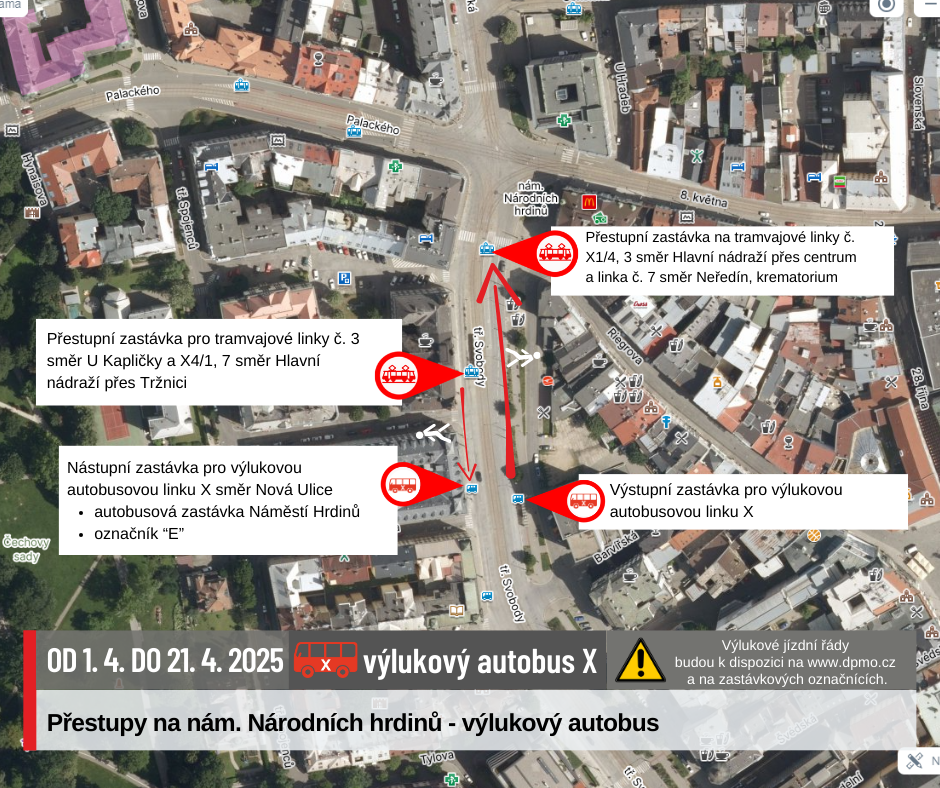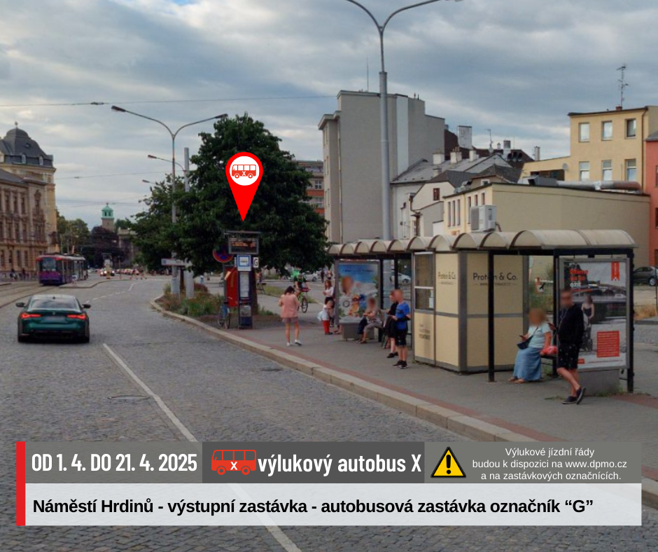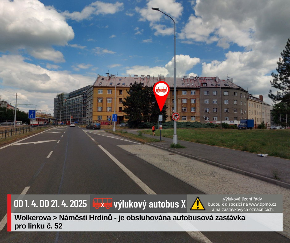 Náhradní doprava bude vedena po trase Náměstí Hrdinů – Nová Ulice – Náměstí Hrdinů výlukovými autobusy X.