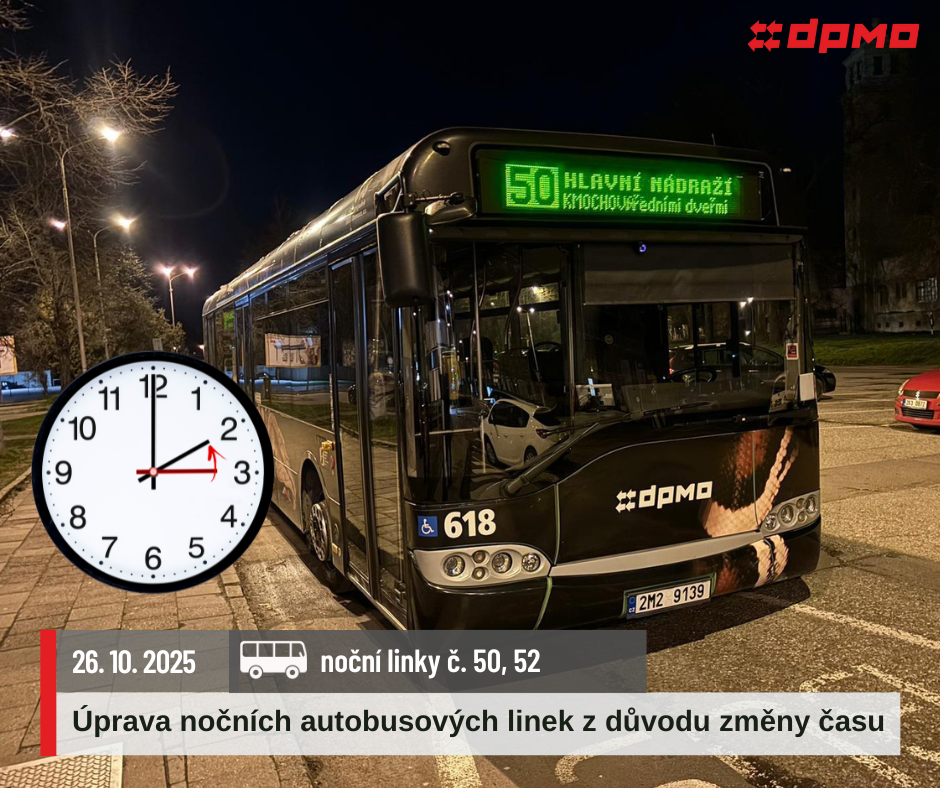 Spoj s odjezdem ve 2.11 hod. ze zast. Hlavní nádraží bude v celé trase realizován dvakrát. Poprvé podle letního času a podruhé již podle středoevropského času.
