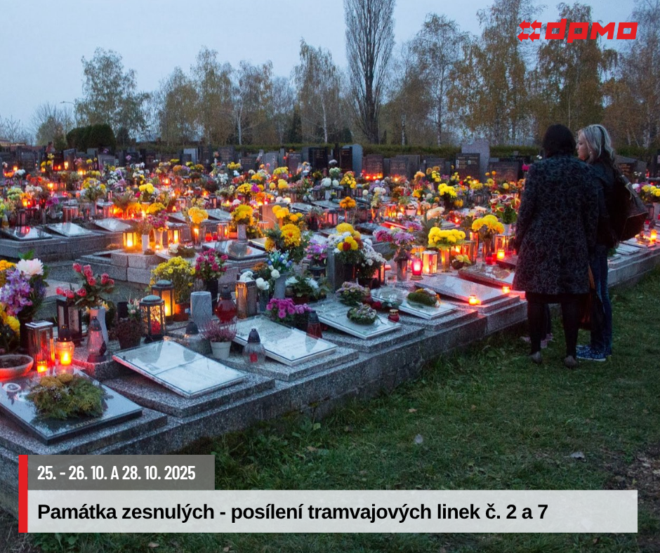 Vzhledem k očekávané zvýšené frekvenci cestujících v období Dušiček směrem na Neředín budou v sobotu 25. 10., v neděli 26. 10. a v úterý 28. 10. 2025 na linkách č. 2 a 7 vyměněny sólo vozy za spřažené soupravy nebo tříčlánkové nízkopodlažní tramvaje.
