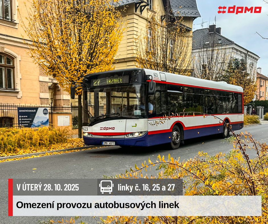 V úterý 28. 10. 2025 dochází z důvodu zákona o prodejní době v maloobchodě k omezení provozu linek č. 16, 25 a 27.