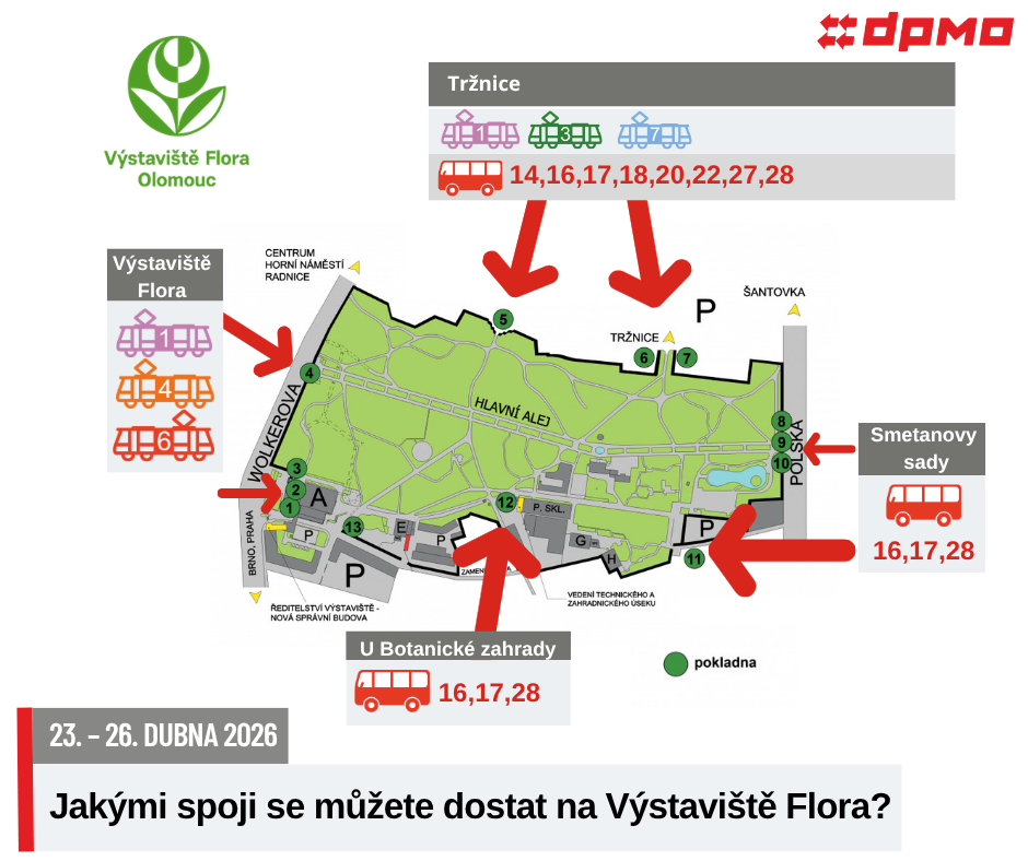 Od čtvrtka 23. 4. do neděle 26. 4. 2026 bude probíhat jarní etapa zahradnické výstavy s názvem „FLORA OLOMOUC“. Výstaviště bude pro veřejnost otevřeno od čtvrtka do neděle od 9.00 do 18.00 hod.