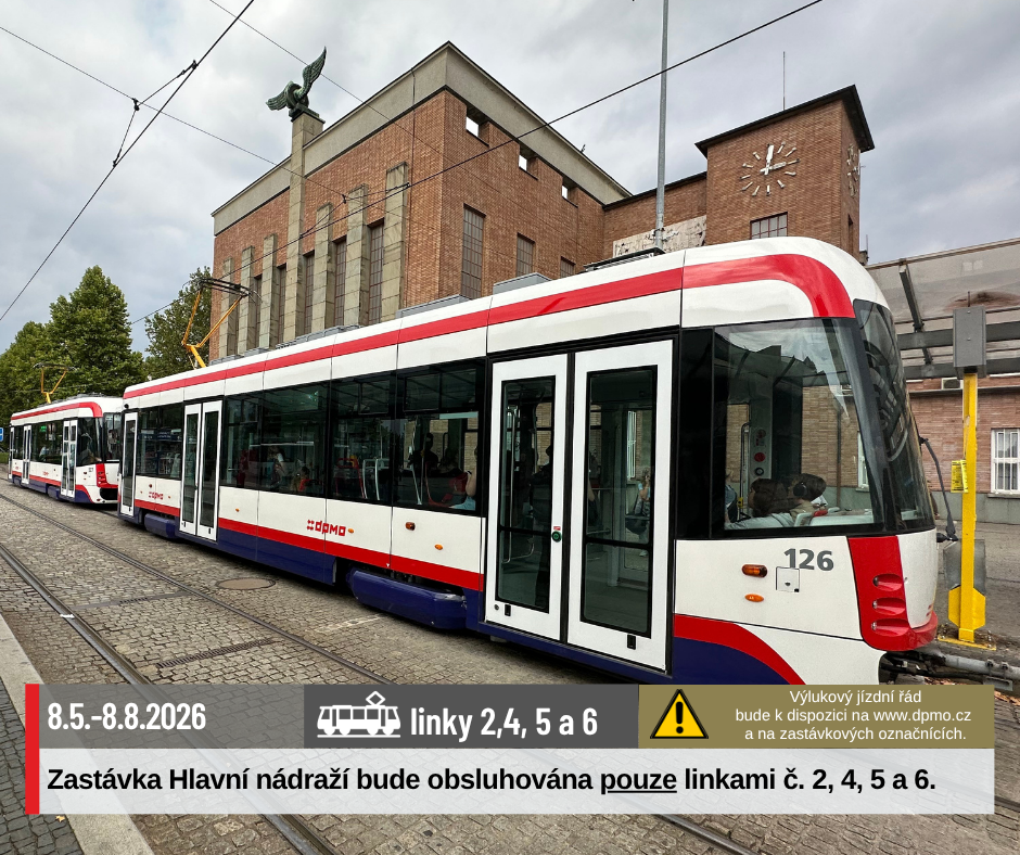 Zastávka Hlavní nádraží bude obsluhována pouze linkami č. 2, 4, 5 a 6.