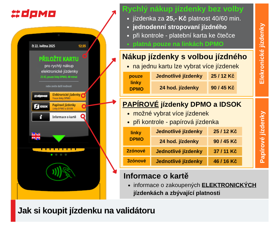 | platné pouze na linkách DPMO | jednotlivé jízdenky: | 25 / 12 Kč |